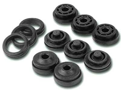 This is where rubber grommets come in. Rubber grommets are flexible pieces, collared to keep them in place within a hole. The rubber ring creates a mechanical buffer between the metal and the other component. This prevents the component from rubbing against the metal and wearing through, causing shorts or leaks and creating malfunctions. The grommets are also able to prevent the grounding of electrical wire when it is passing through metal components.